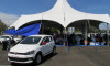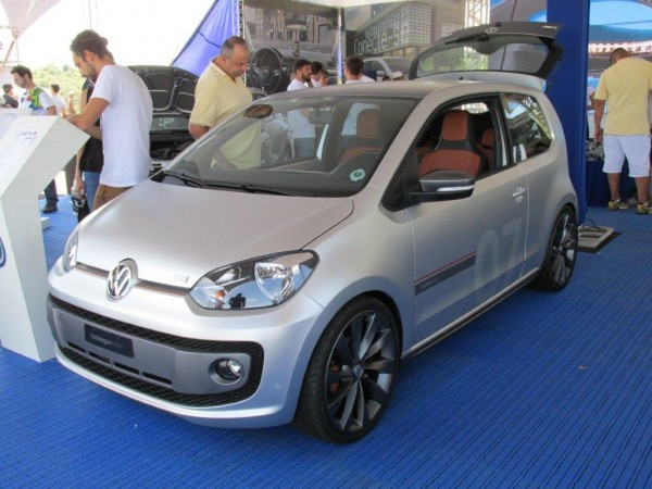 Outro destaque do estande da Volkswagen foi a presença do Up TSI conceitual. Esse modelo é realmente especial. O conceito foi elaborado com base em um Up TSI com duas portas – configuração que não é oferecida no Brasil. A pintura com o nome “Prata Estelar” é outro item fora de série. Fosca e sem verniz, essa tonalidade possibilita uma leitura diferenciada da carroceria, pois é possível ver claramente a superfície do carro, mas sem a influência do reflexo. A tonalidade cinza chumbo do teto, difusor traseiro, capa de espelhos e defletor também tem o mesmo tratamento. As rodas de 18 polegadas com pneus 215/35 são um protótipo baseado no modelo oferecido no CC e também são escurecidas. Na tampa do porta-malas e no brasão do para-choque dianteiro o destaque fica com o adesivo que remete a fibra de carbono. Chamam a atenção, ainda, as lanternas escurecidas e o logotipo TSI (na tampa do porta-malas e no capô) pintado de branco.