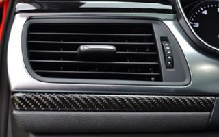 O acabamento é primoroso, com uso de couro Alcântara nos bancos, vários elementos em aço escovado e fibra de carbono em partes do painel e laterais de porta. O volante tem a base achatada e os bancos trazem desenho esportivo. O preto predomina inclusive no teto. O carro usa chave presencial. Então a partida é feita por um botão posicionado ao lado direito da alavanca do câmbio (próximo ao passageiro).