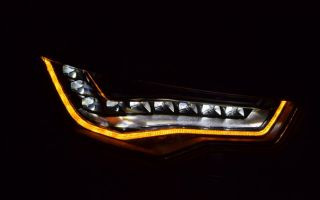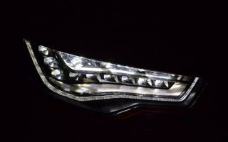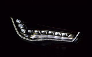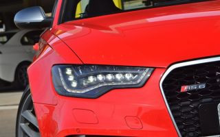 Outro diferencial da RS6 são os faróis dianteiros Full Led! A solução usada pela Audi é realmente inteligente. Diferente de soluções dos concorrentes BMW e Mercedes, a Audi utiliza um grande conjunto de blocos de LEDs. Assim, cada bloco individual de LED é otimizado para uma determinada função. Na função de farol baixo, um conjunto de leds se acende para produzir a iluminação ideal. Quando é acionado o alto, outro conjunto de leds, como foco de longa distância é acionado. E quando é necessário um farol de curto alcance (em neblina ou chuva) parte dos leds do farol baixo se apagam, e um outro conjunto suplementar de leds, de curto alcance, ilumina as laterais próximas da dianteira. Assim, o carro não precisa ter faróis auxiliares, e mantém uma iluminação perfeita em todas as condições. E como os blocos dos leds são fixos, não existe a possibilidade de falhas na operação de moto res elétricos de ajuste de foco (presentes nos sistemas de Xenon autodirecionais e faróis de LEDs dos modelos concorrentes).