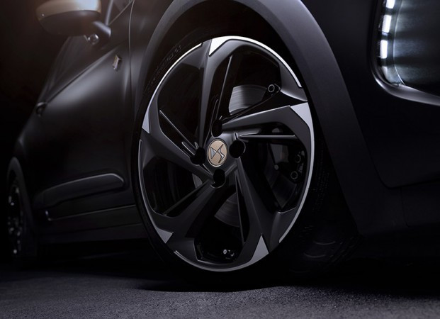 Entre os elementos de design estão: saídas de escapamento duplas específicas, rodas de liga de 18' diamantadas pretas, pinças de freios dianteiros preto brilhante, emblemas específicos nas cores do DS Performance, painel de instrumentos específico e o painel de bordo assinado pela DS Performance.