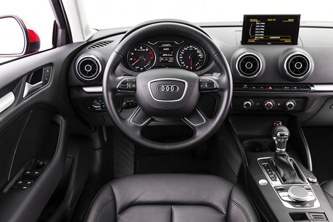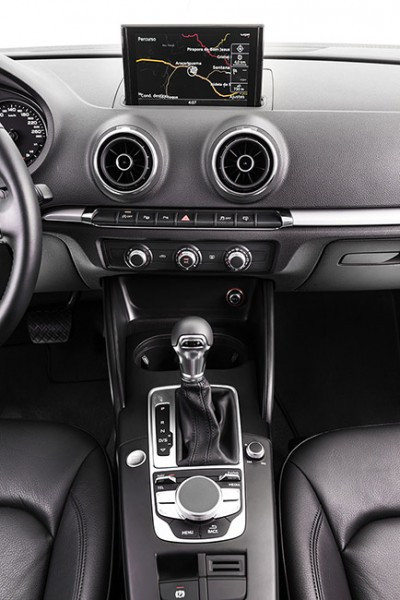 Um dos diferenciais do A3 Sedan Ambiente é a oferta de opcionais, muito mais ampla. Entre os principais equipamentos está o rádio MMI plus com sistema de navegação.