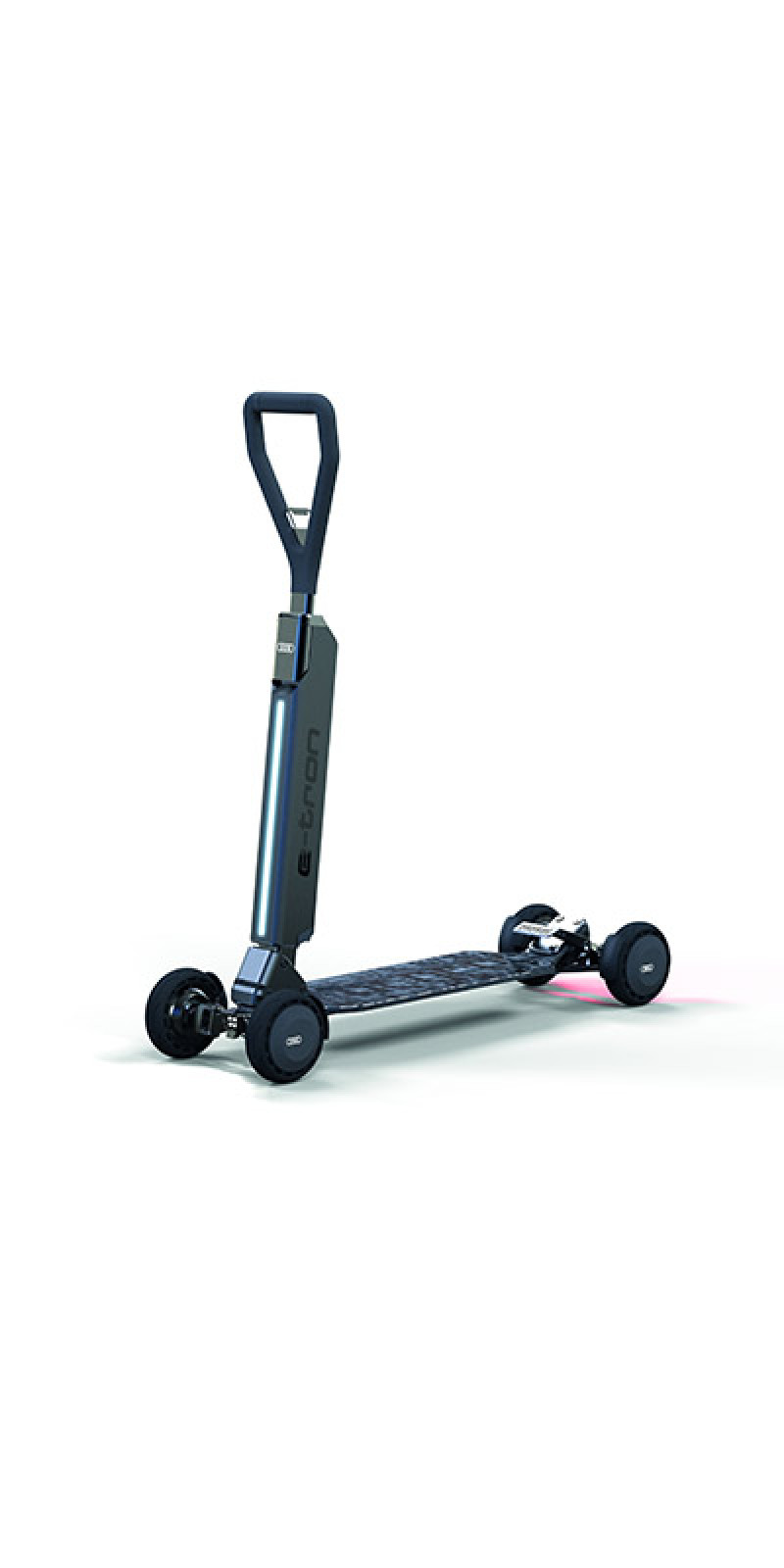 Em direção à tendência urbana global de mobilidade multimodal, a Audi apresenta seu novo conceito de patinete elétrico. Batizado de Audi e-tron scooter, combina as vantagens de um patinete elétrico e um skate. O modelo tem 12 kg e pode ser dobrado e armazenado convenientemente no porta-malas do veículo ou puxado como um carrinho, de forma a ser transportado por carro, ônibus ou trem. Dentre os destaques está seu manuseio, pois permite ao piloto ter uma mão livre e assim poder olhar ao redor e sinalizar com a outra mão. Produção e vendas são planejadas para o final de 2020.