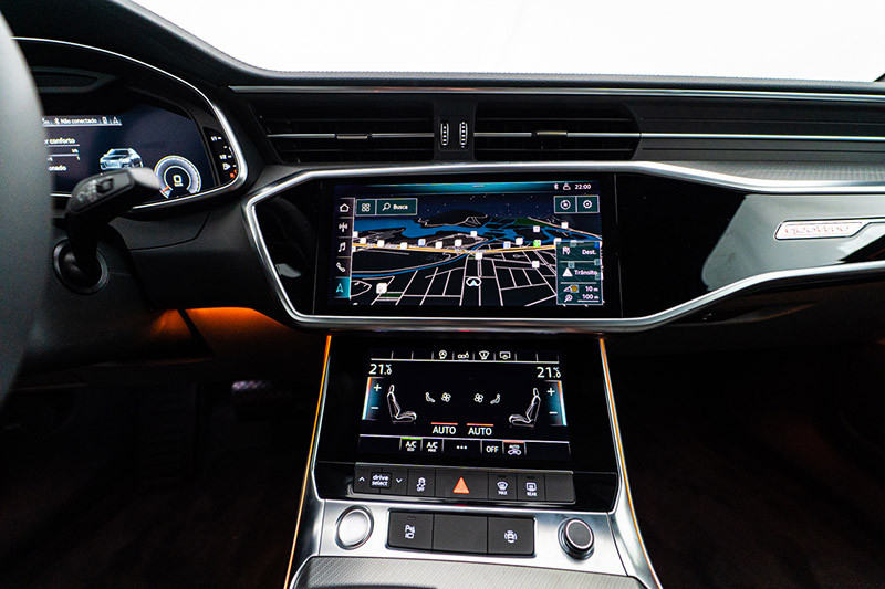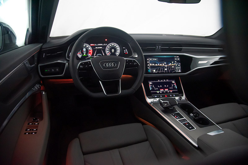 Os novos Audi A6 e A7 seguem a estratégia global de digitalização do recém-lançado Q8. A arquitetura do interior se mescla sem emendas com o novo conceito operacional no console central e painel, que trazem dois grandes displays sensíveis ao toque de alta resolução que substituem o botão giratório e os botões de controles convencionais dos modelos anteriores.