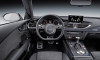 O painel de instrumentos tem fundo preto, mostradores brancos e ponteiros na cor vermelha. Logotipos RS estão presentes nas chaves, no volante esportivo multifuncional de três raios revestido com couro, nos estribos das portas, no tacômetro, no grande mostrador do sistema de informações para o condutor e no monitor eletricamente retrátil do sistema MMI navigation plus.