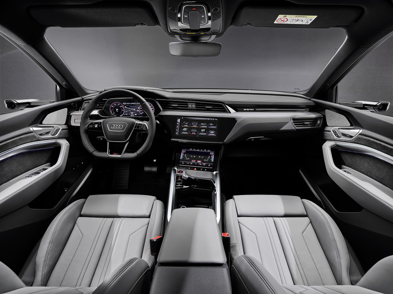 O modelo é equipado com o sistema de controle digital sensível ao toque MMI Touch com duas grandes telas centrais. No terceiro display, o Audi virtual cockpit posicionado atrás do volante, o motorista pode selecionar uma tela especial e-tron que move o veículo para o centro. E o head-up display complementa o vasto leque de informações à disposição. O sistema de som é o Bang & Olufsen 3D com 16 alto falantes e 705 Watts de potência.