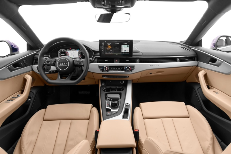 Além disso, a lista de equipamentos de série continua extensa. Os itens incluem ar-condicionado automático; Audi drive select; assistente de freio de estacionamento com auto-hold; banco do motorista eletricamente ajustável; bancos em couro sintético; pacote de luzes ambiente; Controle de cruzeiro com limitador de velocidade; Audi Virtual Cockpit Plus de 12,3 polegadas; e rodas de liga-leve 18 polegadas (8Jx18 pneus 245/40 R18). Os opcionais são pintura metálica ou perolizada, e teto solar elétrico.