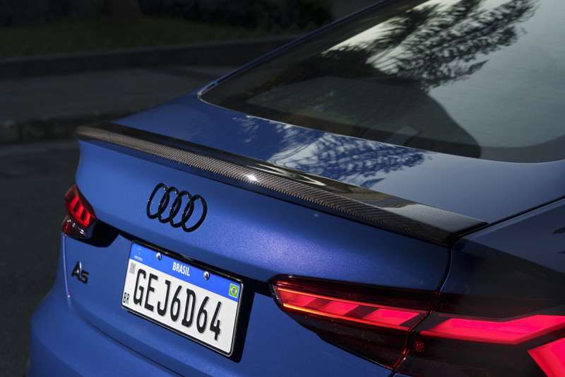 A edição especial é desenvolvida com um design exclusivo que confere ao modelo ainda mais esportividade, com o spoiler traseiro e as capas dos retrovisores externos compostos em fibra de carbono, material altamente resistente, leve e tecnológico. O visual traz ainda um adesivo com o logotipo das quatro argolas na parte inferior da porta traseira e a tonalidade preto brilhante aplicada no logotipo da marca, em elementos da cabine e na moldura da grade hexagonal dianteira. As novas rodas Audi Sport de 19 polegadas com pinças de freio vermelhas completam o visual. No interior, o veículo recebe ainda um badge exclusivo com o nome e o número da edição, aplicado no console.