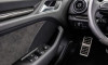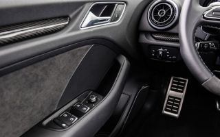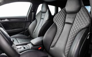 Como um membro topo de linha da família, o interior do novo RS3 Sportback conta com acabamento exclusivo. Ele usa fibra de carbono em várias partes. Os bancos esportivos são forrados de couro Nappa Fina, com costuras contrastantes. Com base reta, o volante RS multifuncional é forrado de couro e Alcantara.