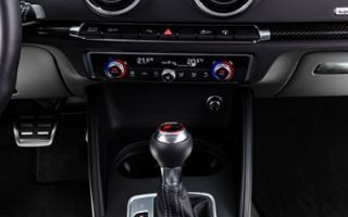 O condutor do novo Audi RS3 pode escolher entre o modo automático, ou interagir nas trocas através das borboletas posicionadas junto ao volante. Também existe a possibilidade de realizar trocas pela alavanca seletora.