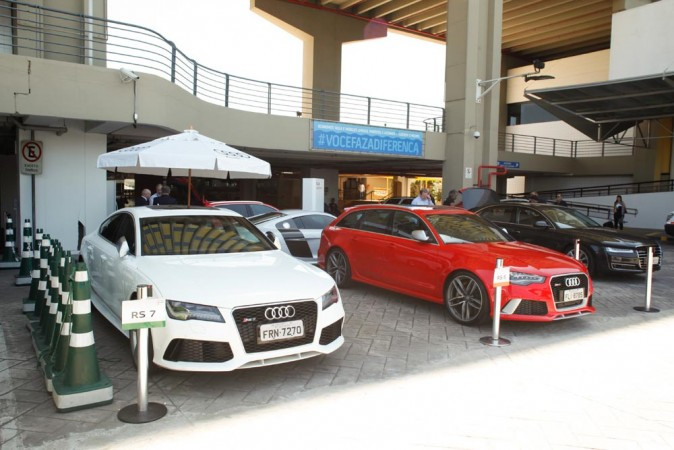 Diariamente, os test drive acontecem das 13h às 20h próximo ao pavilhão. Para testar, estarão disponíveis o RS Q3, RS4, RS5, RS6, RS7 e o R8. A linha RS é preparada na fábrica da quattro GmbH, divisão esportiva da Audi, e conta com moto rização ainda mais potente que os mesmos de sua família. O RS7, por exemplo, acelera de 0 a 100 km/h em 3,9 segundos e conta com moto r 4.0 Biturbo FSI, 560 cv de potência e torque de 700 Nm.