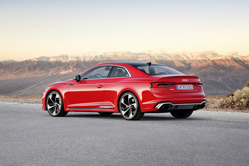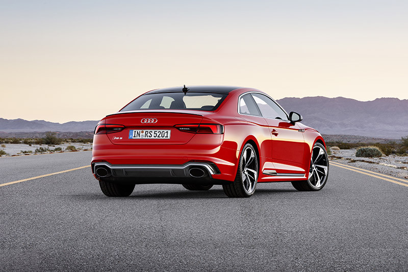 O acabamento esportivo do veículo é detalhado pela entrada do difusor e pelo sistema de escapamento ovalado característicos da linha RS, além do spoiler montado na tampa traseira. Com 4.723 milímetros de comprimento, o novo RS 5 Coupé é 74 mm maior que o modelo anterior.