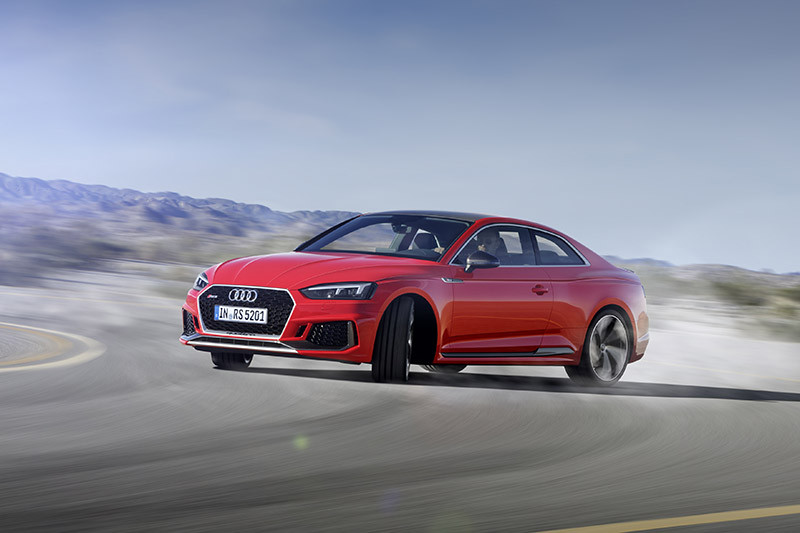 O Audi RS 5 Coupé chegou à sua segunda geração com várias novidades. Para a parte estética, os designers se inspiraram nos detalhes do modelo de competição Audi 90 quattro IMSA GTO. Grandes entradas de ar com a grade tipo colmeia típica dos modelos RS caracterizam a dianteira do carro.