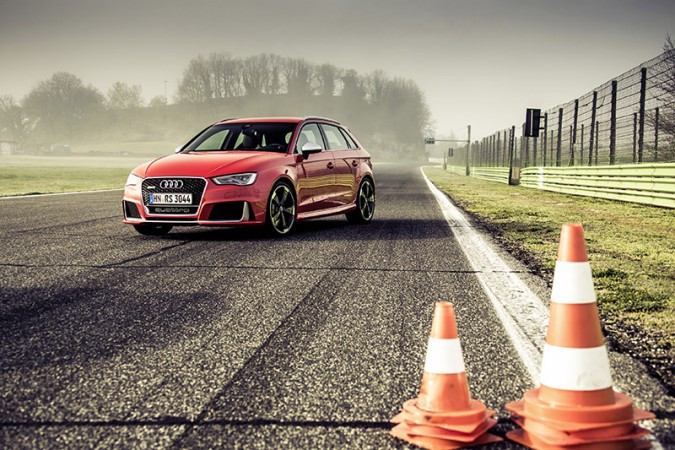 Em comparação com o Audi A3 Sportback, a carroceria é 25 milímetros mais baixa. A direção progressiva, a suspensão esportiva RS e o controle adaptativo dos amortecedores opcional Audi magnetic ride foram projetados especialmente para o RS. Caso desejado, a Audi pode instalar discos de freios de cerâmica por trás das rodas de 19 polegadas - uma novidade no segmento dos compactos premium.