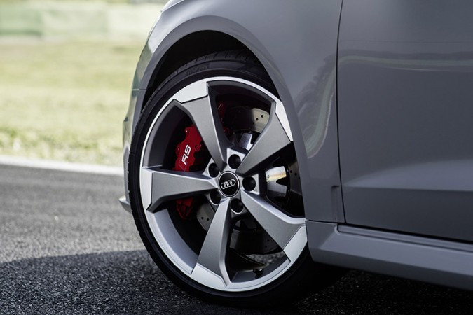 O novo modelo topo de linha da série A3 roda sobre aros de alumínio fundido de 19 polegadas com design de cinco raios estilo rotor e pneus 235/35. A Audi oferece opcionalmente rodas polidas de 19 polegadas com visual titânio fosco ou preto antracito de alto brilho. Como opção, os pneus podem ser nos tamanhos 255/30 na dianteira e 235/35 nas rodas traseiras.