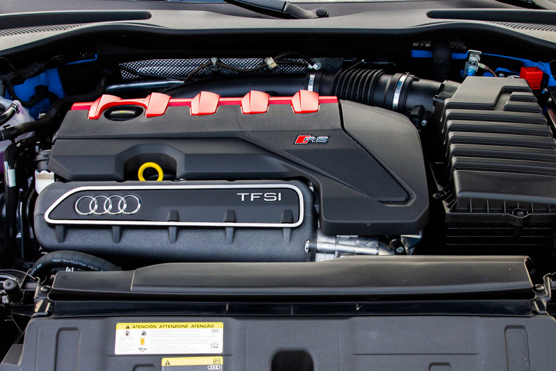 Equipado com eficiente motor 2.5 litros TFSI (cinco cilindros) capaz de desenvolver 400 cavalos de potência (e 480 Nm de torque à 1700 RPM), o veículo possui câmbio de dupla embreagem S-tronic de sete velocidades (a DQ500-7ª) e a consagrada tração integral quattro sob demanda com tecnologia haldex. O conjunto faz o esportivo ter um desempenho poderoso, com aceleração de 0 a 100 km/h em 3,7 segundos, e velocidade máxima de 280 km/h.