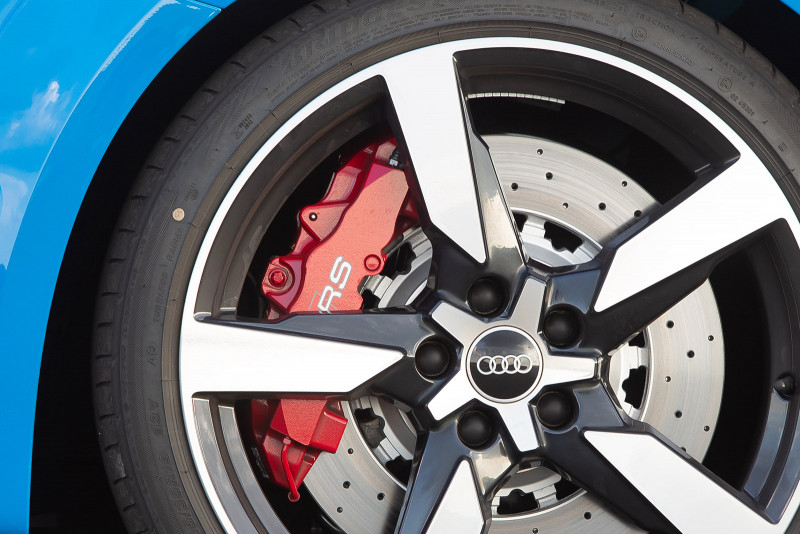 O baixo peso, de apenas 1.440kg, e a suspensão esportiva fornecem os pré-requisitos básicos para a dirigibilidade incrível do Audi TT RS. A direção progressiva adaptada especificamente para o RS garante um contato próximo com a estrada. No eixo dianteiro, discos de aço ventilados e perfurados estão em ação atrás das rodas de 19 polegadas. As pinças do freio são pintadas de série na cor vermelha.