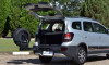 Com o estepe foi fixado do lado de fora da tampa, bem no centro do porta-malas, foi preciso modificar a operação de abertura. Por motivo de segurança, a abertura do bagageiro é feita em dois estágios: é preciso destravar o sistema (essa operação pode ser feita pelo controle re moto na chave ou pelo botão instalado no painel do carro) e depois liberar uma alavanca no suporte, que permite movimentar o braço que fixa o pneu sobressalente. Depois, o suporte deve ser deslocado lateralmente até o final do curso de abertura (até travar), para que o compartimento de carga possa ser aberto. A roda do estepe é idêntica às demais e inclui sistema antifurto. Um dos parafusos é montado no lado interno do suporte, e só pode ser acessado após a abertura do braço.
