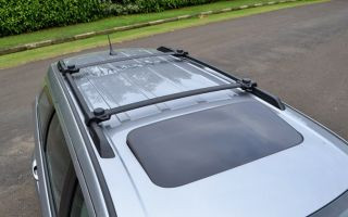 Outro item que tem o seu charme é o porta-oculos que também funciona como um espelho para monitorar as crianças no banco traseiro. Para isso, basta abrir o porta-óculos e fecha-lo parcialmente para o espelho poder ser utilizado.
