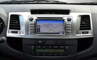 Outro destaque da picape é a central multimedia com tela sensível ao toque. O equipamento é bastante completo, mapas elaborados e funções adicionais, incluindo uma que ensina o moto rista a dirigir de forma mais econômica. Além disso, a conectividade na Hilux é muito boa com entrada USB, SD-Card e iPod. Existem também controles do sistema de som no volante. O sistema oferece boa qualidade de áudio graças aos seis alto-falantes presentes no veículo. Essa central ainda conta com recepção de TV no sistema digital e câmera de ré integrada.