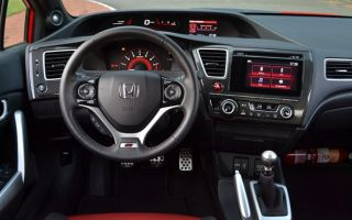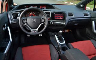 Inspirado em carros de competição, o interior do Civic Si Coupé ressalta a esportividade com o revestimento dos bancos nas cores preta e vermelha, além do painel que traz componentes com aspecto de fibra de carbono e instrumentos com iluminação vermelha. Os bancos são em tecido (não esta disponível a forração em couro) e tem desenho anatômico para ressaltar a pegada esportiva.