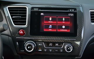 Não espere muito dos equipamentos do Civic Si. Ele traz o “padrão” em equipamentos de conforto e conveniência. Conta com volante multifuncional (com ajuste de altura e profundidade), teto solar elétrico, a manopla de câmbio e o volante revestidos em couro e os pedais em alumínio. Outros equipamentos presentes são ar-condicionado automático e digital de simples zona, central multimedia com câmera de ré e chave com telecomando das portas. No quesito segurança, o Si traz airbags frontais, laterais e de cortina para moto rista e passageiro dianteiro. Não existe farol com xênon, bancos elétricos, sensores de estacionamento na frente ou alguma tecnologia revolucionária. Ainda sim, está integrado ao painel o display de LCD i-MID com a função Power Monitor, que indica por meio de um gráfico de barras a evolução da potência do moto r.