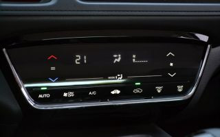 O HR-V traz uma série de interessantes atributos em seu interior. O console central é elevado, e junto com o painel de instrumentos, lembram um cockpit. A coluna de direção tem ajuste de altura e profundidade, e o banco do motorista traz ajuste de altura (sempre manuais).