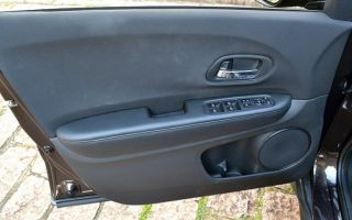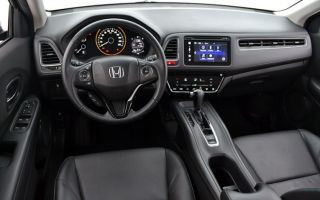 O HR-V traz uma série de interessantes atributos em seu interior. O console central é elevado, e junto com o painel de instrumentos, sugerem um cockpit. A coluna de direção tem ajuste de altura e profundidade, e o banco do moto rista traz ajuste de altura (sempre manuais).
