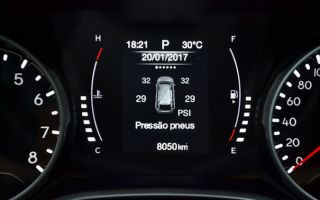 Está presente também controlador de velocidade com limitador e monitoramento da pressão dos pneus. Apenas para informação, a Longitude (próxima na família Compass) acrescenta itens como ar-condicionado de duas zonas, chave presencial, rodas de liga-leve aro 18 e volante revestido de couro.
