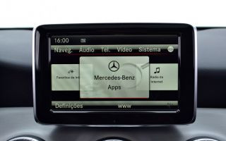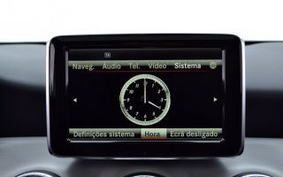 A Mercedes usou uma solução ousada para a tela do sistema multimedia. Assim, um display fixo se destaca no centro do painel. É comum escutar críticas de muitos usuários desse design. Muitos dizem que o formato não combina com um visual moderno. Com ele, o moto rista visualiza várias funções do carro, como o ar-condicionado digital, o sistema Comand Online, navegação por GPS e acesso à internet por meio de browser e aplicativos especiais da Mercedes-Benz. Esse multimídia aceita DVD e CDs, e conta com entradas USB e SD-card. A conexão Bluetooth permite integrar todas as funcionalidades de telefones celulares e a execução de músicas por meio de streaming. Vale destacar que essa tela não é sensível ao toque. Os controles são feitos por isso conjunto de botões instalado no console do central.