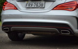 Entre os destaques da CLA está capô com saliências destacadas incorporado na dianteira e a grade com contorno em forma de diamante. Na traseira, também destaque para o estilo esportivo, com lanternas bem afiladas. Destaque para a iluminação traseira em Full Led, incluindo até mesmo a luz de ré.O teto também tem um contorno bem curvo, sugerindo o desenho de um cupê. Por fim, as duas saídas cromadas do escapamento, uma de cada lado, completam o toque esportivo.