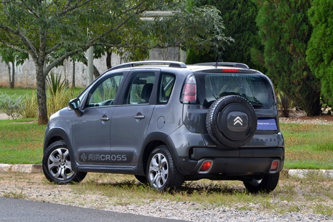Na traseira, o Aircross recebeu novos para-choques, com destaque para a luz de neblina e de ré, além de câmera de ré integrada. O estepe permanece à esquerda da tampa do porta-malas e ganhou um novo acabamento. O conjunto das lanternas traseiras tem novo acabamento em máscara negra.