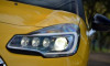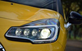 Certamente, o grande destaque do modelo é justamente a sua nova assinatura visual. E para isso a Citroën apostou numa receita completamente inédita, no mercado nacional. Dessa forma, o DS3 é o primeiro carro na categoria equipado com novos faróis que associam as tecnologias bi-xênon e FULL LED. Esses faróis conferem ao DS3 um visual ainda mais agressivo, com ótima qualidade de iluminação, tanto para a luz baixa quanto para a luz alta. A receita para isso é interessante. Foram incluídos 3 módulos de LED, por elemento ótico. Esses LEDs contam com 3 níveis de intensidade (lanterna, farol baixo e alto). Operando junto com os LEDs, existe um sistema de lâmpada bixenon de baixa potência, para farol baixo e alto. Então, no uso do farol, atuam simultaneamente o sistema de LEDs e Xenon. O Xenon utilizado é de baixa potência, com cerca de 2.000 lumens. Em carros equipados apenas com Xenom, a intensidade luminosa passa de 4.000 lumens. E por conta disso, o farol precisa ter sistema de auto nivelamento e lavador (segundo legislação brasileira). Com o Xenom de baixa potência, que não ofusca a visão dos outros moto ristas que trafegam em sentido contrário, não são necessários o auto nivelamento e os lavador. Os LEDs complementam a irradiação luminosa, garantindo máxima eficiência quando o facho alto é acionado. Isso tudo permite produzir um farol mais barato e eficiente, além de muito mais bonito.