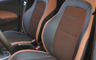 Por dentro, o carro mantém o estilo diferenciado. As cores preta e laranja predominam nos revestimentos de porta e bancos, e até no painel de instrumentos.