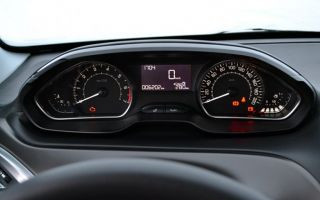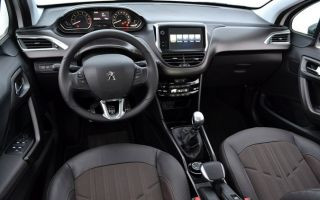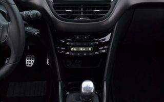 O painel de instrumentos é visto por cima do volante (assim como acontece no 208), diminuindo o movimento de visão entre estrada e instrumentação. No console central, o freio de mão é do tipo aviação, que libera espaço graças ao seu formato. Ainda que tenha um desenho inovador, a alavanca é um pouco pesada. No console central está também o comando elétrico da cortina que cobre (por dentro) o teto de vidro panorâmico.
