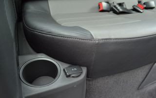 O banco traseiro da cabine dupla traz alguns recursos interessantes como o apoia-braço de cada lado. Também existe dois porta-garrafas de até 500 ml(um de cada lado) além de uma saída de 12V adicional. Outro destaque na Saveiro Cabine Dupla é a circulação de ar dentro já que os vidros laterais traseiros são basculantes (outra exclusividade na categoria). Existe também o desembaçador do vidro traseiro (de série em todas as versões da Cabine Dupla).