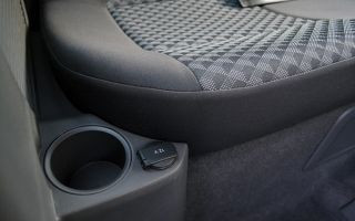 O banco traseiro inclui alguns recursos interessantes como o apoia-braço de cada lado. Também existe dois porta-garrafas de até 500 ml (um de cada lado) além de uma saída de 12V adicional. Outro destaque na Saveiro Cabine Dupla é a circulação de ar dentro já que os vidros laterais traseiros são basculantes (outra exclusividade na categoria). Existe também o desembaçador do vidro traseiro (de série em todas as versões da Cabine Dupla). Outros diferenciais são os três apoios de cabeça no banco traseiro e os cintos laterais de três pontos com recolhimento automático. O cinto central é do tipo abdominal. Os mais atentos vão notar também um compartimento na parte de baixo do banco, que serve para guardar ferramentas, como macaco e chave de roda.