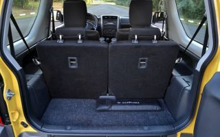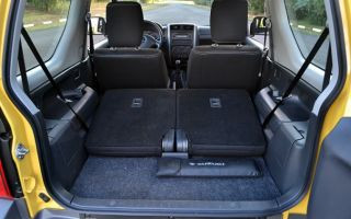 O jipe da Suzuki é compacto. Mede 3,67 m de comprimento e tem 1,60 m de largura, o entre eixos é bom, com 2,25 m, quando comparado ao comprimento do veículo. O porta malas acomoda 113 litros de bagagem, mas com o banco traseiro rebatido o espaço se torna bastante expressivo. Ainda que o carro seja pequeno, o teto é bem alto. A altura total do carro é de 1,70 m, assim, o interior não dá aquela sensação de aperto mesmo para as pessoas mais altas.
