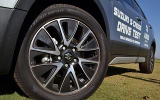 A suspensão dianteira é do tipo MacPherson com amortecedores pressurizados, molas progressivas e barra estabilizadora. O conjunto da suspensão traseira conta com eixo de torção, tubular e de geometria de efeito direcional. O S-Cross vem equipado com rodas aro 17 em estilo Black & Diamond e pneus Pirelli P-Zero Nero 225/50 R17. Na versão GLS, são 19 cm de altura livre em relação ao solo. Isso permite boa mobilidade ao S-Cross. Lombadas, valetas e guias de calçadas não são problemas para o S-Cross. Estradas de terra e caminhos de areia de praia também podem ser transpostos, sem maiores problemas.