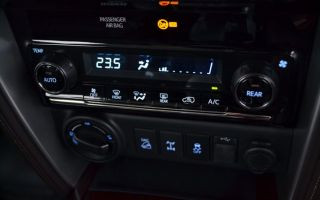 Na SW4, o ar-condicionado tem ajuste digital e automático, porém com simples zona nos bancos dianteiros. Mas ele pode atuar sobre as três fileiras de bancos, incluindo saídas específicas para a segunda e terceira. Sobre a segunda fileira, existe um controle que permite ajustar a intensidade para as saídas traseiras. Como os dutos traseiros ficam no teto, cada passageiro recebe um bom fluxo de ar.
