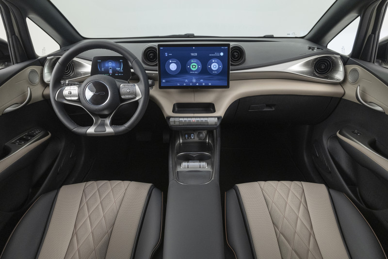O Dolphin é o primeiro veículo da BYD a adotar o design da linha “Ocean”, inspirada nos animais marinhos e ondas do mar. É um automóvel que traz muita tecnologia e diversão. Vem equipado com ICS (Inteligent Cockpit System) que possui uma tela de 12,8", rotação elétrica para posição vertical e horizontal, além de seis alto-falantes.