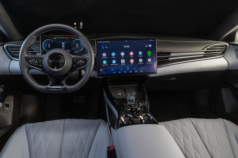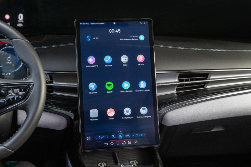 O BYD SEAL possui uma tela rotativa exclusiva de 15,6 polegadas equipada com a função de controle de voz precisa e inteligente. Conta com aplicativos integrados, incluindo Android Auto e Apple CarPlay. O modelo possui ainda um painel de instrumentos completo com tela de 10,25 polegadas. O novo SEAL conta com sistema de áudio Dynaudio com 12 alto-falantes que oferece som de qualidade premium e o carregamento sem fio para smartphones.