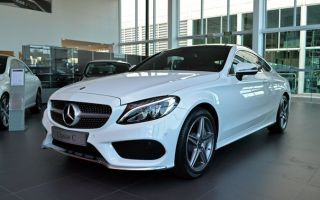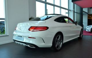 Outra opção do estoque é a C250 Coupe. Em comparação ao sedã, o cupê é 37 milímetros mais baixo e traz para-choques AMG com entradas de ar maiores e um defletor aerodinâmico dianteiro cromado. As rodas, pertencentes ao mesmo pacote visual AMG, são de 18 polegadas.