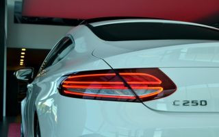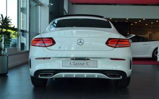 O C250 Coupé Sport vem também equipado de faróis LED comandados pelo sistema dinâmico “Intelligent Light System”. Sua traseira se diferencia do sedã, mas remete ao Classe S Coupé. O escapamento faz parte do pacote visual AMG: com duas ponteiras visíveis ligadas por um friso cromado, se integra à parte inferior do para-choque, reforçando o caráter esportivo do modelo.