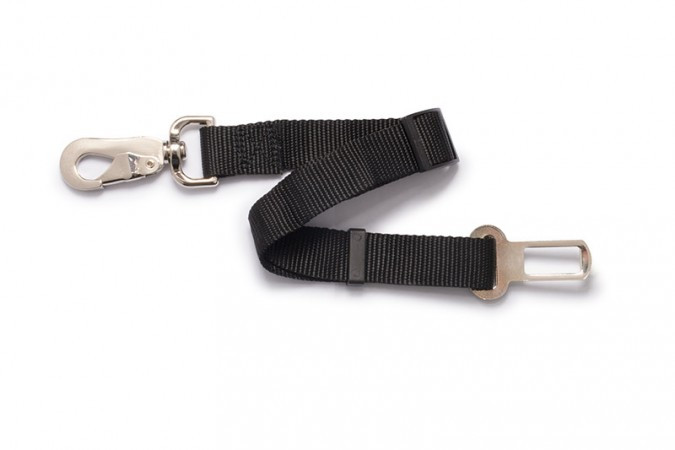 Feita de nylon, a guia permite prender o animal ao feche do cinto de segurança e sua coleira, evitando que ele circule inapropriadamente pelo interior do automóvel ou tente pular pela janela. A guia pode ser regulada e permite que o animal viaje sentado ou deitado no banco, garantindo assim uma viagem mais confortável.