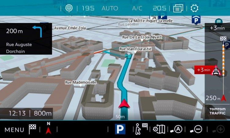 CITROËN CONNECT NAV - Este novo sistema de navegação 3D, tátil e conectado em tempo real, permite fazer um zoom com dois dedos (tipo iPad) e evolui para facilitar a orientação graças a uma melhor cartografia. As principais cidades brasileiras e monumentos são materializados em 3D. O conjunto dos relevos é, também, representado de forma realista. Em uma estrada com várias faixas, um sistema de setas permite visualizar mais rapidamente a faixa correta a ser usada. Uma janela pop-up aparece na tela durante a rodagem para materializar, em perspectiva, a abordagem de um cruzamento complexo, com os painéis associados. As informações de velocidades nas rodovias principais (autoestrada e estradas mais importantes) são fornecidas ao motorista. Além disso, para simplificar as interfaces táteis e tornar o carro mais seguro em situação de direção, o reconhecimento vocal passa a ser disponível, permitindo interagir nas áreas da Navegação, da Telefonia e das Mídias. O sistema permite, assim, ler os SMSs e os e-mails e enviar mensagens rápidas a partir de seu carro. Finalmente, a função Mirror Screen via USB, permite encontrar seu conteúdo multimídia e pilotar, direta e facilmente, seu smartphone e suas aplicações compatíveis usando a tela tátil.