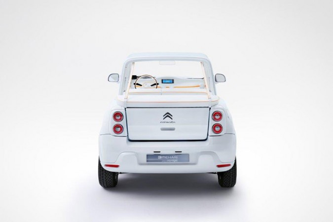 Orientado para o futuro, E-MEHARI se inspira no mítico Méhari de 1968. Um conversível de quatro lugares, 100% elétrico, com um estilo moderno e divertido. Nesta nova fase da parceria com o Grupo Bolloré, a CITROËN confirma sua vontade de propor carros diferentes, cheios de frescor e otimismo. O Citroën E-MEHARI é um "it car", que possui um estilo descontraído e cheio de expressividade.