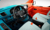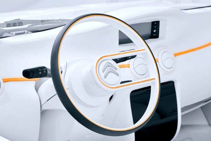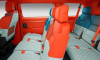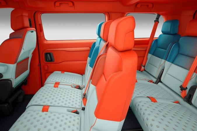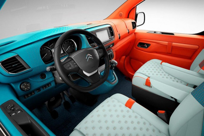 Os assentos são compostos na parte inferior, de couro Nappa verde água com pespontos vermelho-alaranjados cítricos e, na parte superior, de um tecido cuja cor varia de acordo com o assento. O painel é revestido com um tecido específico, em harmonia com as cores e o grafismo dos assentos. Um conjunto banhado pela luz natural graças ao grande teto de vidro;
