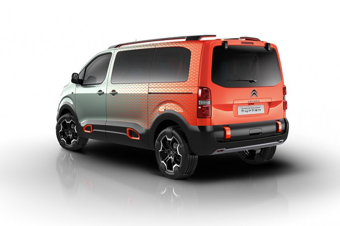 Essa versão sobe de nível com um visual aventureiro e colorido, a serviço da liberdade e da funcionalidade. O CITROËN SpaceTourer HYPHEN retoma os códigos do SUV e acentua o seu estilo original, com um para-choques ampliado, frisos nas aberturas de rodas e proteções na parte inferior da carroceria inspiradas no concept AIRCROSS. Todos esses elementos na cor Moondust Dark são "vitaminados" por acessórios na cor vermelho alaranjado anodizado. Mais alto em relação à versão de série, o concept SpaceTourer HYPHEN assenta-se sobre rodas de alumínio diamantadas pretas de 19'. A cor, um verde suave, reforça a fluidez de suas formas e evoca a natureza. A cor é associada ao preto brilhante do seu teto e aos adesivos com padrões hexagonais.