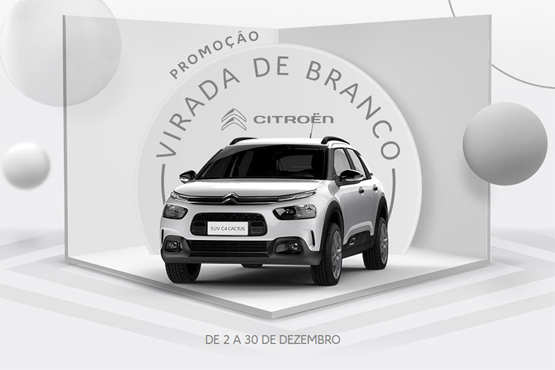 A Citroën fecha o ano de seu centenário com a Campanha Virada de Branco Citroën. Com a ação, os clientes concorrem a um C4 Cactus Branco Banquise com câmbio manual zero km, que será sorteado no dia 31/12 pela Loteria Federal.