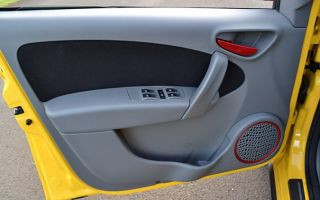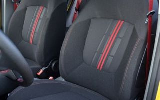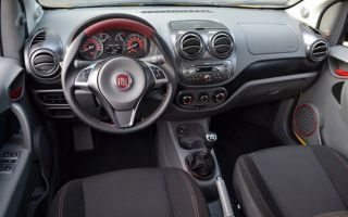 No Palio Sporting, visualmente falando, o interior é bem mais interessante. A Fiat caprichou no uso de cores diferentes. O vermelho dá o tom em diversas partes. O volante traz a parte superior forrada em couro avermelhado, com costura dupla também em vermelho. As maçanetas internas e os cintos de segurança também são em tom vermelho. O painel segue a mesma linha, com a predominância do vermelho. E pra finalizar, detalhes dos alto falantes dianteiros e a parte frontal da forração dos encostos de cabeça também são em vermelho. De resto, o interior mescla tons em preto, cinza escuro e cinza claro, com uma faixa que corta todo o painel imitando “carbono”. A forração dos bancos é feita num tecido gostoso ao toque e o estofamento é macio. Detalhe que o Palio traz três encostos de cabeça (de mesmo tamanho) no banco traseiro. Sob o aspecto visual, a Fiat caprichou bastante no Palio Sporting. Ainda que o carro tenha um interior bastante agradável, a marca ainda precisa melhorar na qualidade estrutural do acabamento, que mostra pequenos problemas de montagens e encaixes, bem como ruídos quando o carro passa por fortes vibrações.